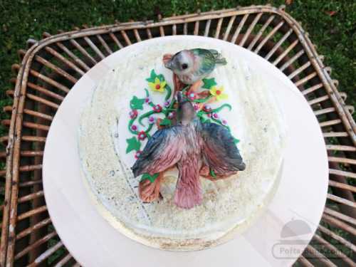 Am vazut acum ceva timp un bibelou cu 2 vrabiute si mi-a placut mult. Si pentru ca astazi suntem invitati la o cina mai aparte, am pregatit un tort decorat cu cele 2 vrabiute dragalase.