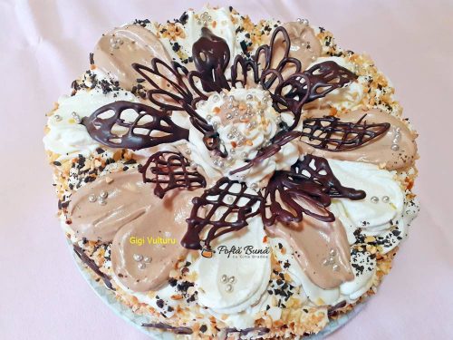 Eu am ornat dupa cu frisca, ciocolata si alune, dar voi puteti orna cum doriti: cu ciocolata rasa, alune, nuci, orice altceva doriti sau va place.