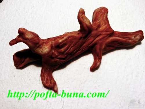 Se face un sul la lungimea si grosimea dorita, apoi cu forfecuta ( e speciala, numai pentru pasta de zahar) se taie intr-un capat in 2 bucati, in celalalt capat in 3 bucati si se mai decupeaza si in parti 2 fasii . Se modeleaza cu degetele, rapid, se da forma dorita, sa fie ca-n natura, o forma conctorsionata, neregulata. 🙂 Se zgarie ici colo, cu ustensilele pe care le vedeti in poze (ebosoare), ca sa imite scoarta de copac si gata.